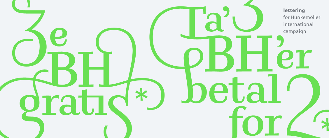 For those projects where a complete fontfamily with full characterset is not needed, but there is need for a unique typographic voice, Lettering is a great solution. Lettering is specifically beneficial to packaging and product design, magazine and newspaper mastheads and headers and pay-offs for advertising campaigns.